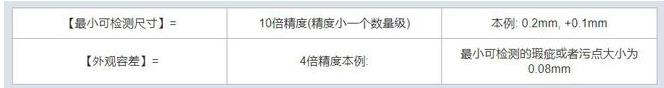 一般情況下,精度和公差的對應(yīng)關(guān)系如下:E20機器視覺檢測設(shè)備_CCD視覺檢測_外觀缺陷檢測系統(tǒng)_精質(zhì)視覺E20機器視覺檢測設(shè)備_CCD視覺檢測_外觀缺陷檢測系統(tǒng)_精質(zhì)視覺