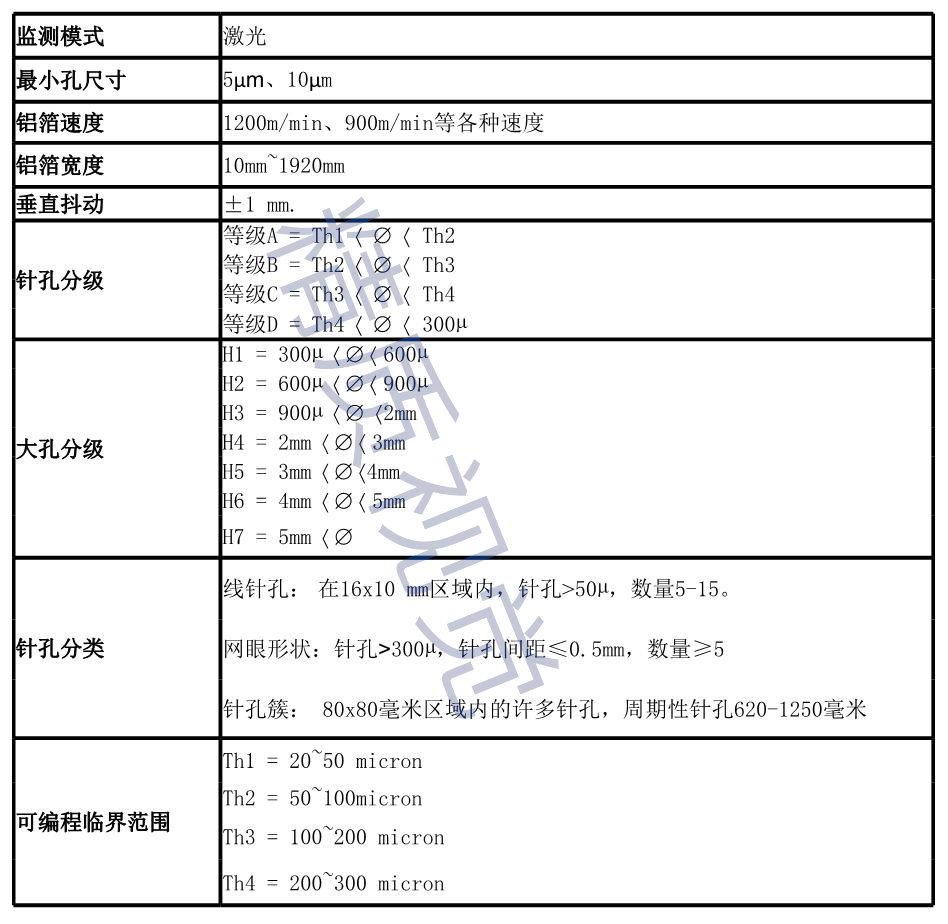 火眼針孔探測系統(tǒng)是一種使用皮秒光子技術(shù),來檢測微孔的設(shè)備,設(shè)備上安裝有皮秒速度的檢測傳感器,同時配備紅外激光源。這個設(shè)備的高速響應(yīng)能力,使設(shè)備能夠在高速情況下檢測到5um,10um的微孔。該種類型設(shè)備的設(shè)計、生產(chǎn)和使用必須遵循歐洲標準EN 60825 -1。ASM20D的設(shè)計、制造和測試均遵循該標準。ASM20D針孔檢測儀是一種光電靜態(tài)系統(tǒng),設(shè)計用于檢測非透明軋制鋁箔上的微孔。o9Y機器視覺檢測設(shè)備_CCD視覺檢測_外觀缺陷檢測系統(tǒng)_精質(zhì)視覺